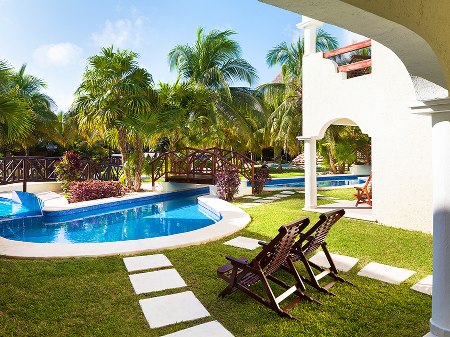 Ofrecen un cómodo acceso a un río lento desde tu terraza o acceso a un jardín tropical seguido del río lento, estas suites están decoradas con inspiración en la cultura mexicana. Con auténticos muebles de madera oscura con cama King o dos camas Queen, cada suite tiene baños contemporáneos equipados con una relajante bañera de hidromasaje, lavamanos dobles y nuestras exclusivas amenidades, creando una atmósfera relajante y romántica en general.