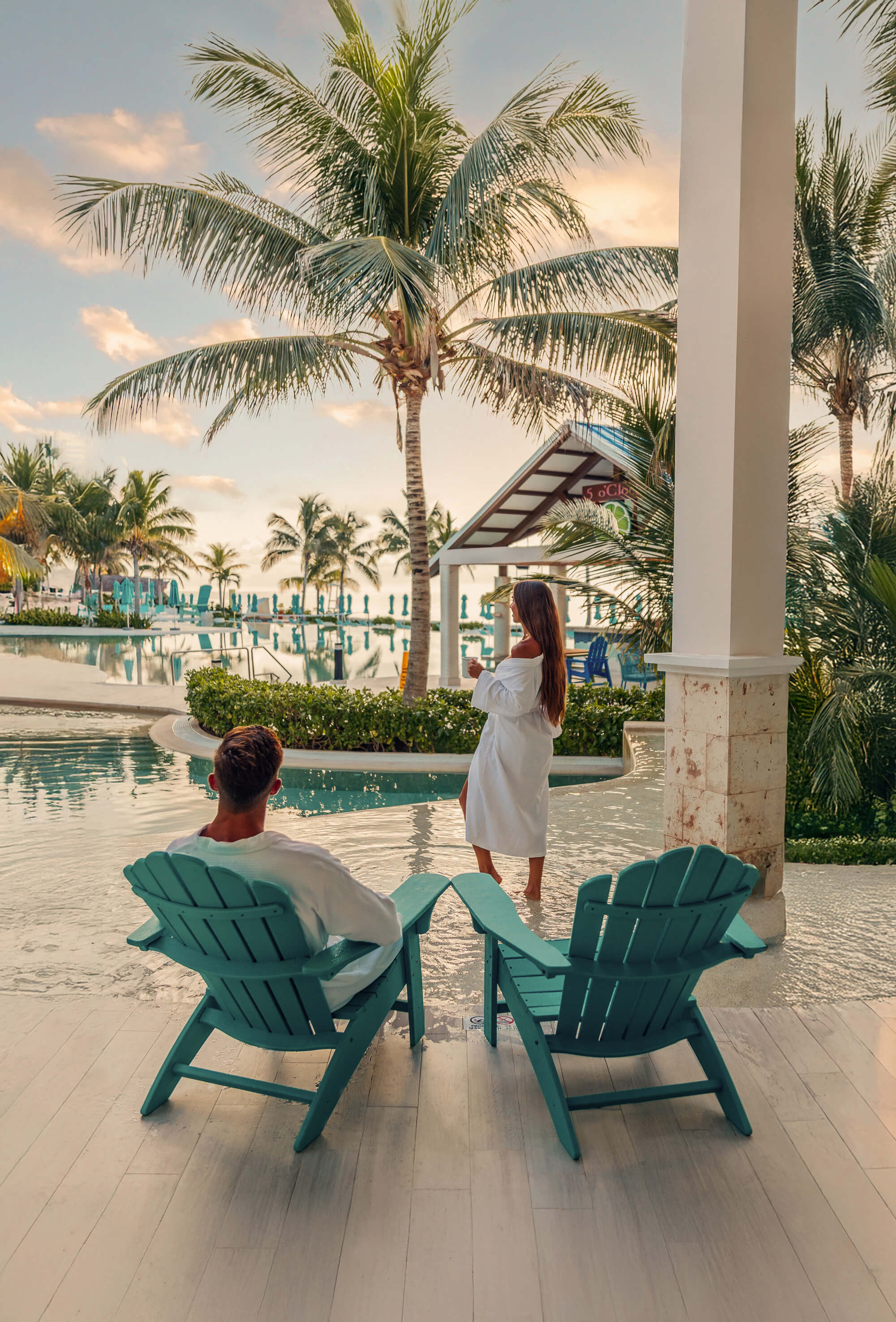 No hay nada como la comodidad y conveniencia de disfrutar de una deliciosa comida en tu espaciosa habitación. Margaritaville Island Reserve Riviera Maya hace que sea fácil satisfacer tus antojos en cualquier momento con el servicio a la habitación las 24 horas que puedes solicitar a través de tu TV, teléfono o aplicación GA. ¿Te apetece un chapuzón en la piscina? También te ofrecemos servicio a tu swim up durante el día. Todo es parte de la experiencia cuando te hospedas en un resort de cinco estrellas en Riviera Maya como esta.