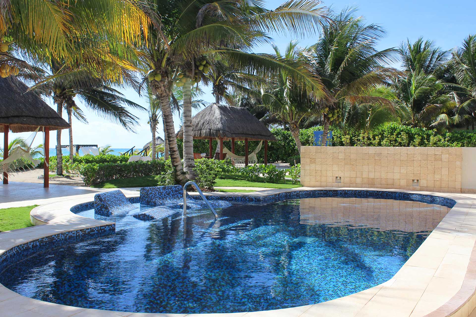 Estas flamantes suites de gran tamaño se encuentran a unos pasos de la playa y piscina, poseen mobiliario de madera bellamente tallada que incluye una cama tamaño King size, baños contemporáneos con doble lavamanos de mármol y ducha, una bañera relajante de hidromasaje para dos, un balcón privado donde puedes relajarte y disfrutar de momentos especiales.