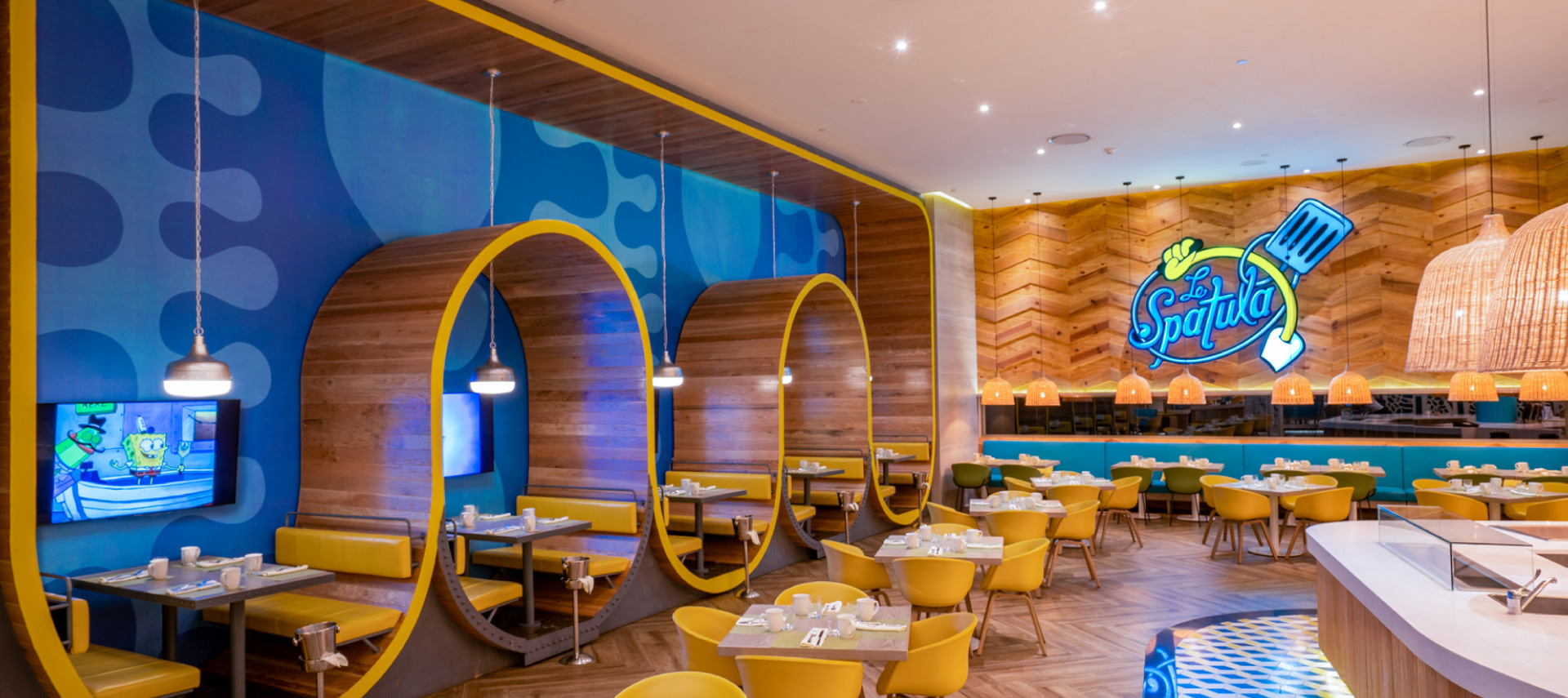 Nombrado en honor a la icónica espátula de Bob Esponja, este alegre lugar orientado a la familia presenta elementos esculturales de gran tamaño y arte con tema de alimentos para proporcionar a los huéspedes una tentadora prueba de Bikini Bottom.