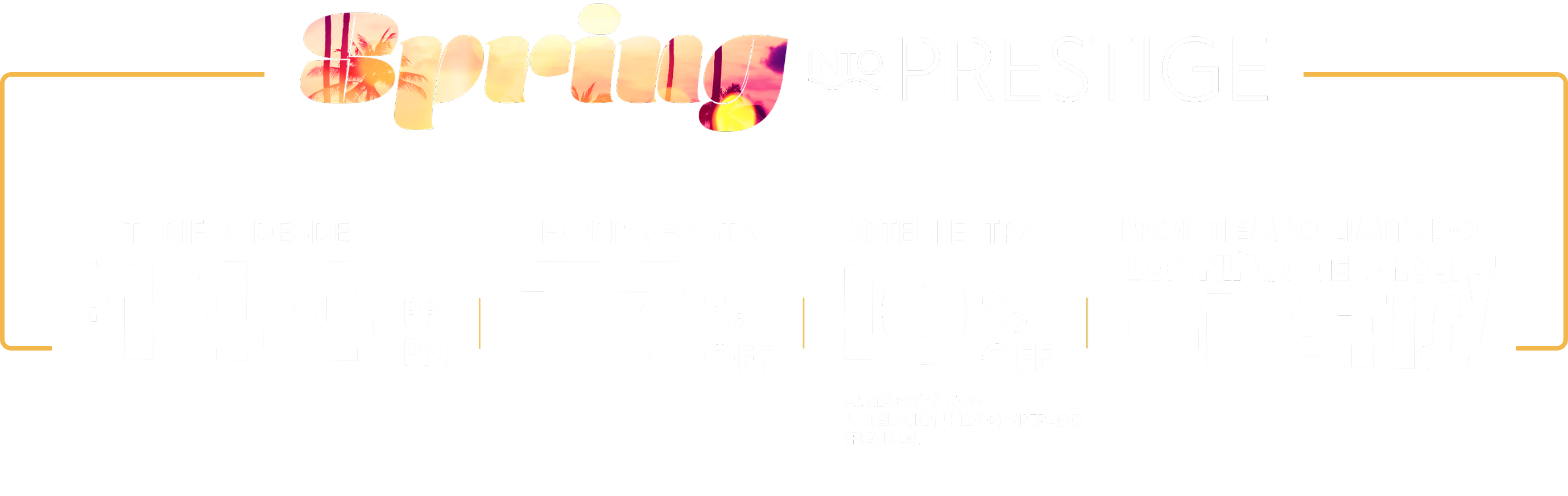 Aprovecha las tarifas bajas especiales disponibles exclusivamente para Socios Prestige como tú.
